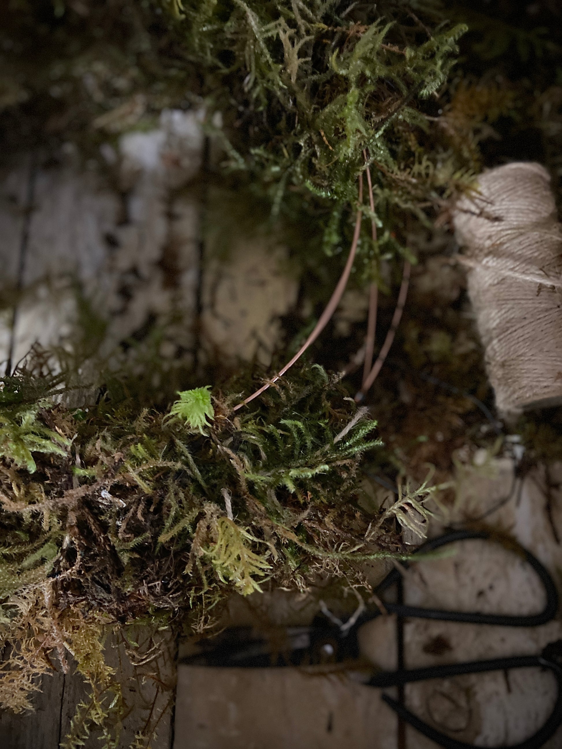 During the workshop, you'll learn various sustainable techniques and tips to create a stunning moss based natural wreath using a rich variety of seasonal foliages, natural materials and adornments, with ribbon added as a final flourish.